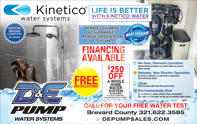 D&E Pump Sales is a trusted provider of Kinetico water systems, delivering advanced whole-home water treatment solutions throughout Brevard County. With decades of local experience, the company helps homeowners enjoy cleaner, healthier water with systems designed for efficiency, reliability, and long-term performance.