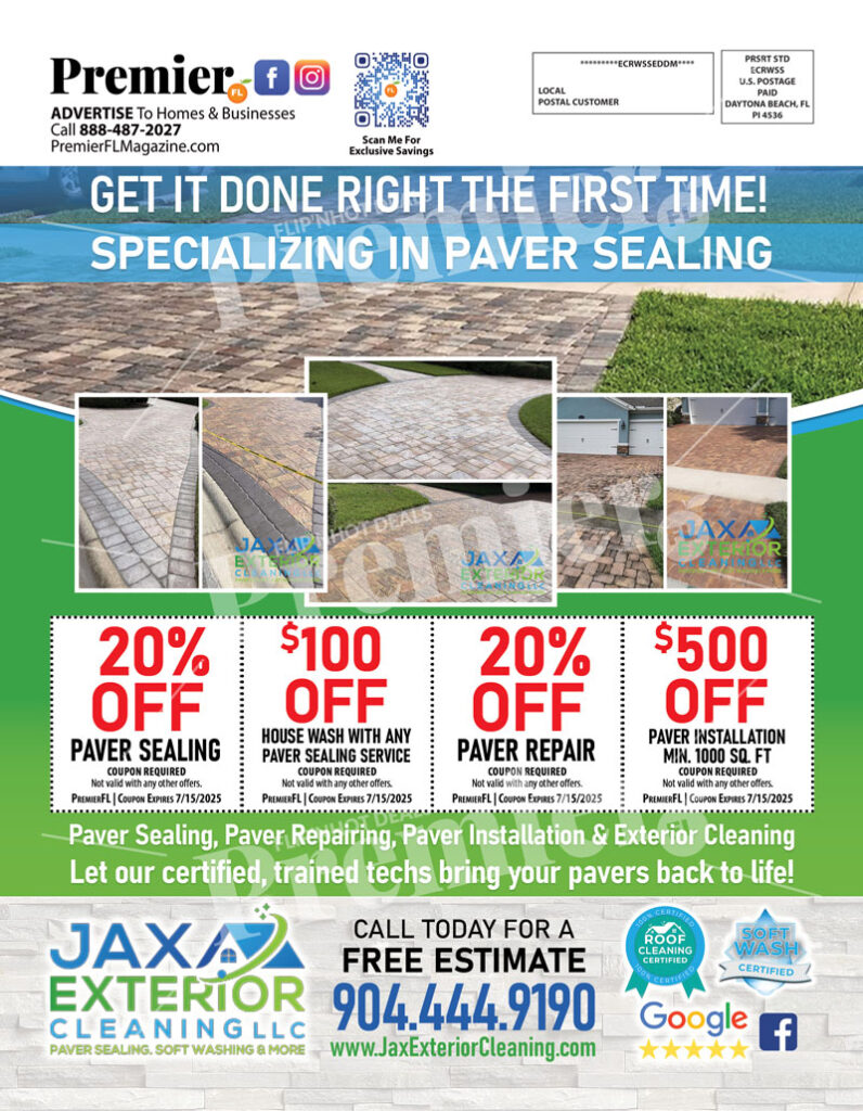 Jax Exterior Cleaning LLC specializes in professional paver sealing, paver repair, paver installation, and exterior cleaning services throughout Jacksonville, Florida. Their certified and trained technicians use industry-leading equipment and techniques to restore and protect your outdoor surfaces.