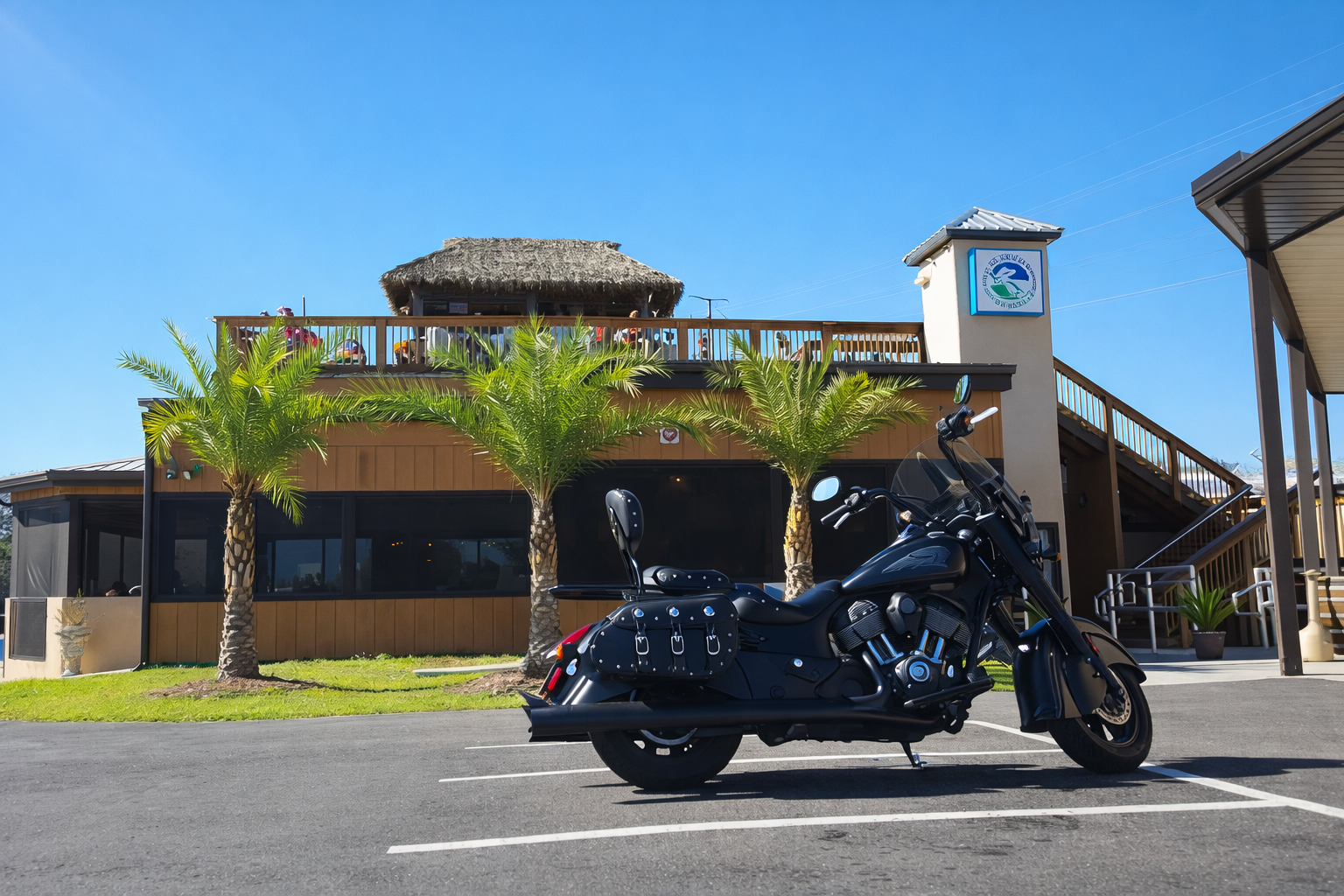 The full-service tiki bar is a highlight, offering tropical cocktails, margarita specials, and cold drinks perfect for Florida weather. With weekly events like trivia nights, karaoke, and drink specials, the restaurant creates a lively yet relaxed setting ideal for friends, families, and group gatherings.
