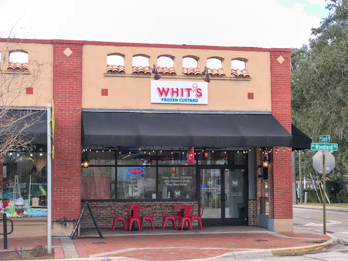 Conveniently located on Woodland Boulevard in downtown DeLand, Whit’s Frozen Custard is a go-to stop after dinner, during a stroll, or for a special dessert run. With friendly service and consistently fresh custard, it’s a local favorite for families, students, and visitors alike.