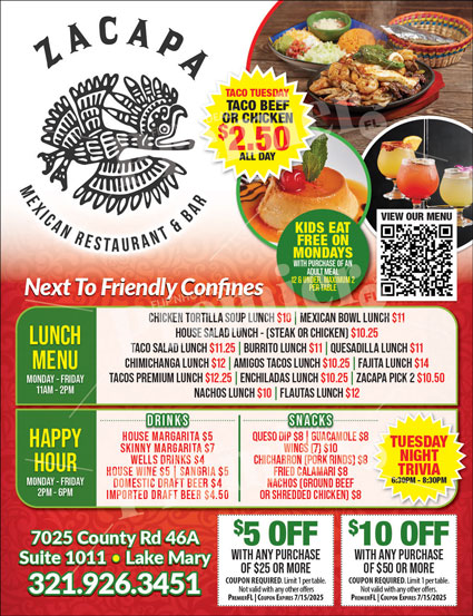 Stop by for great food, excellent service, and a taste of Mexico right in the heart of Lake Mary.
